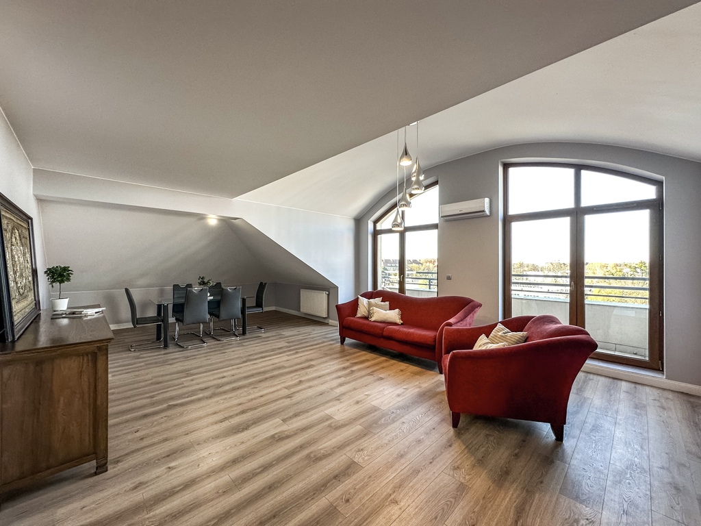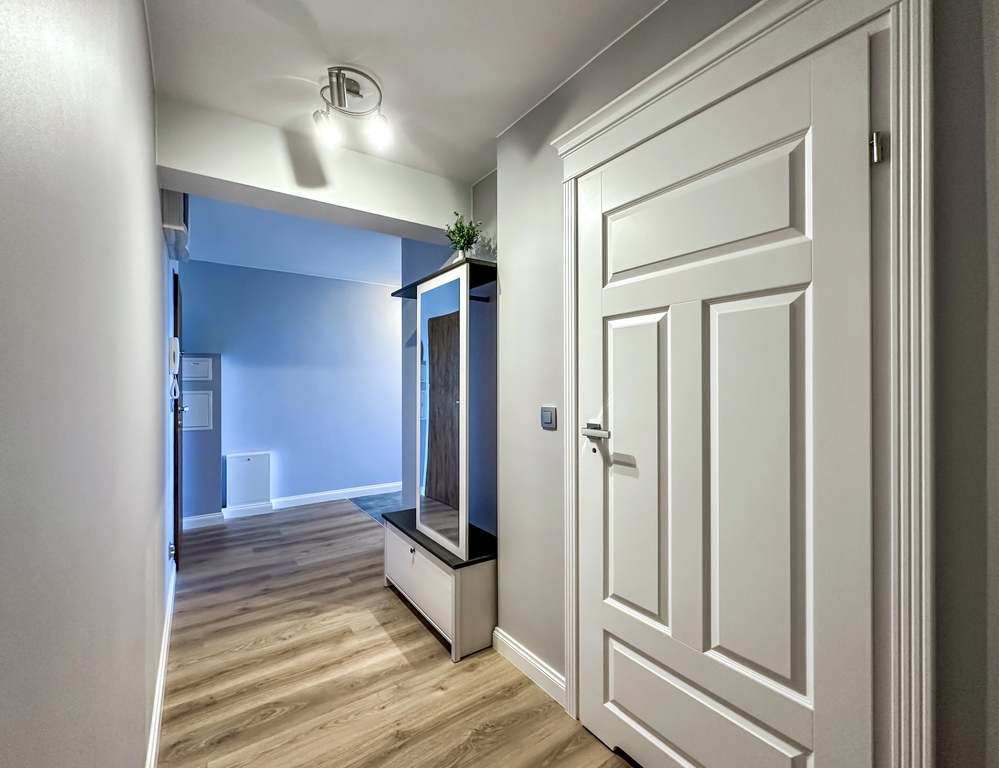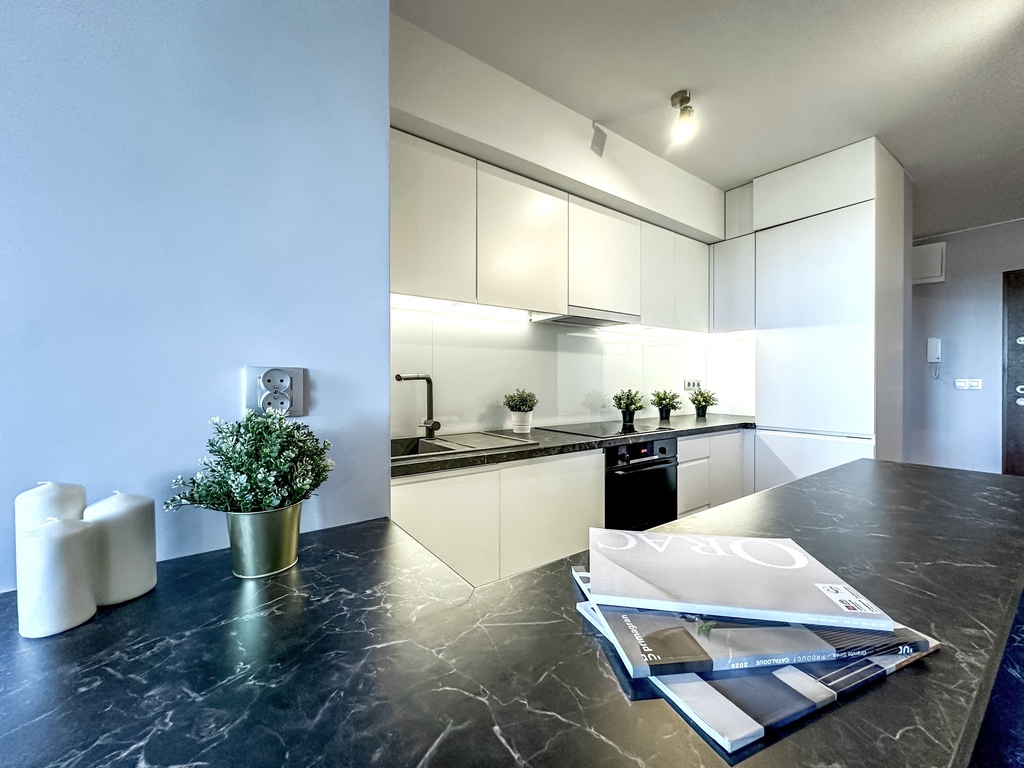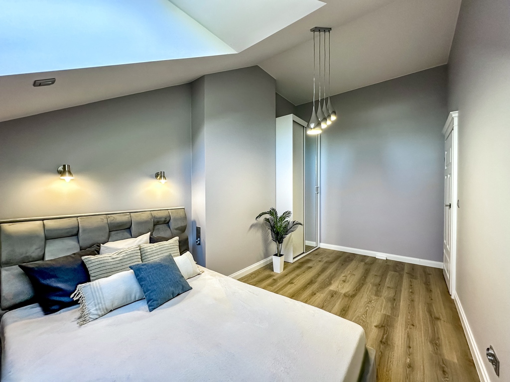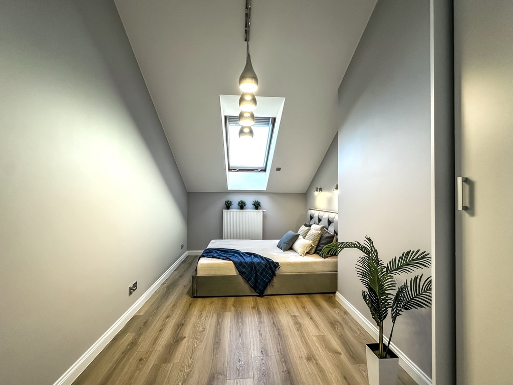 Do wynajęcia wyjątkowy, przestronny apartament o powierzchni 76 m², zaprojektowany we współpracy z architektem wnętrz i wykończony z użyciem materiałów najwyższej jakości. Wnętrze jest w pełni umeblowane i gotowe do zamieszkania. Mieszkanie składa się z jasnego salonu z wyjściem na balkon, komfortowej sypialni z dużym łóżkiem małżeńskim i pojemną szafą, a także nowoczesnej kuchni wyposażonej w zupełnie nowe, nieużywane sprzęty AGD. Istnieje możliwość wydzielenia dodatkowego, trzeciego pokoju, co pozwala dopasować przestrzeń do indywidualnych potrzeb.