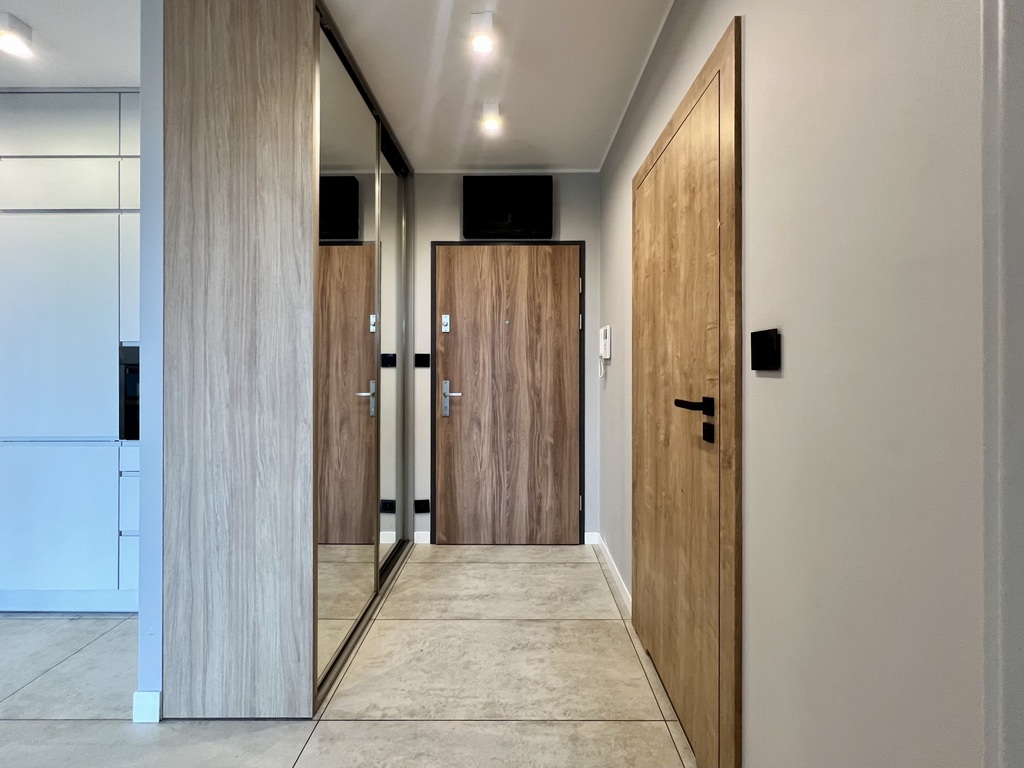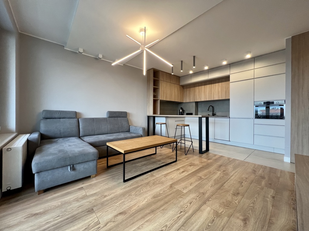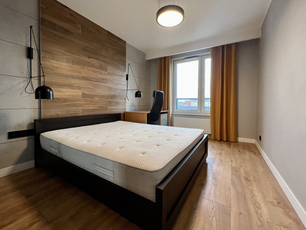 Jasne o wysokim standardzie mieszkanie, na strzeżonym i zamkniętym osiedlu. Do dyspozycji najemcy nowoczesna kuchnia z meblami w zabudowie, wyposażona w najpotrzebniejszy sprzęt AGD (lodówka z zamrażarką, płyta grzewcza, piekarnik, zmywarka, czajnik) oraz stół z krzesłami. W części dziennej wygodna i rozkładana sofa, stolik kawowy, oraz szafka RTV. Z salonu wyjście na balkon z pięknym widokiem. W sypialni podwójne łóżko z materacem oraz pojemna szafa. Łazienka z prysznicem. W przedpokoju znajduje się dodatkowa duza szafa na wymiar.