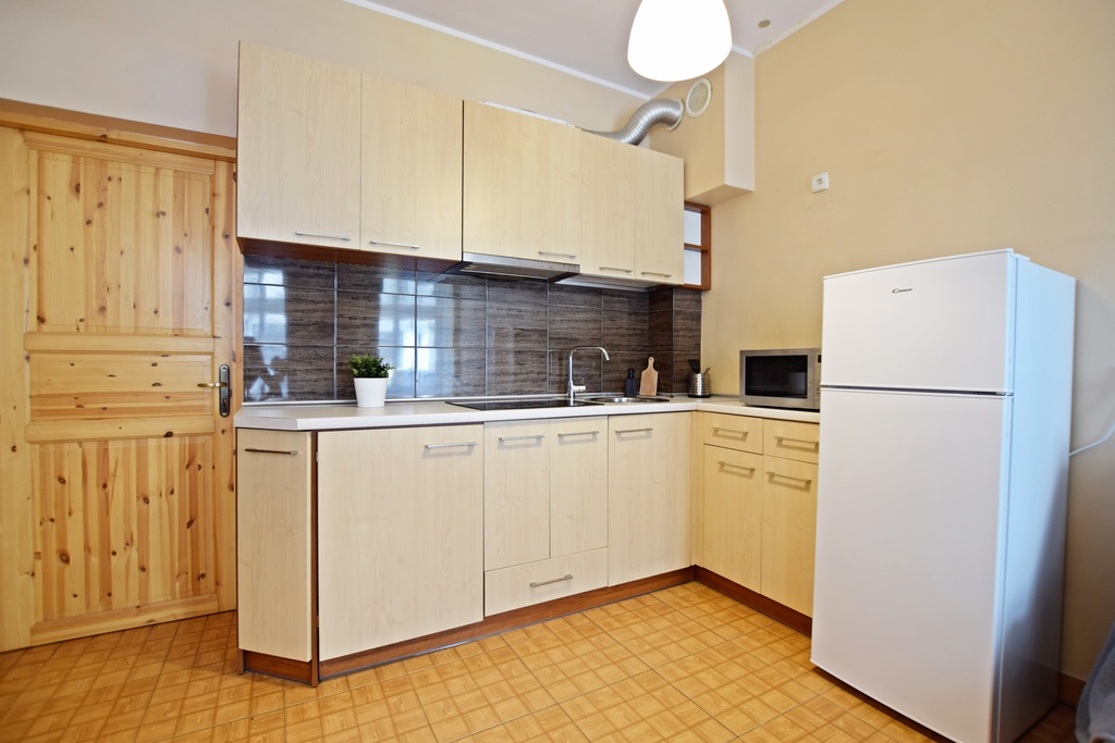 Nieruchomość składa się z salonu wyposażonego w dwie wygodne kanapy, stolik, szafkę RTV oraz telewizor. Aneks kuchenny wyposażona w sprzęt AGD: piekarnik, płyta grzewcza, okap, lodówka z zamrażarką, mikrofalówka. W części jadalnianej stół z krzesłami. Sypialnia wyposażona w wygodne łóżko, biurko, fotel, dwie regały, wieszak na ubrania. W przedpokoju wieszak na odzież wierzchnią, szafka na obuwie. Łazienka z wanną.