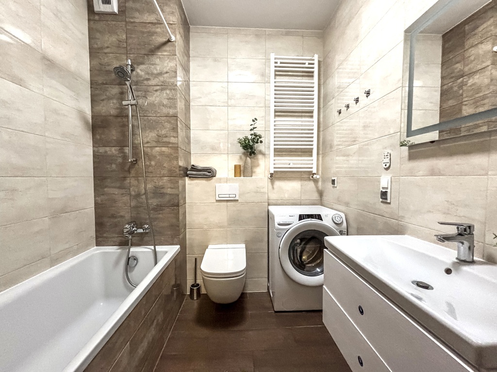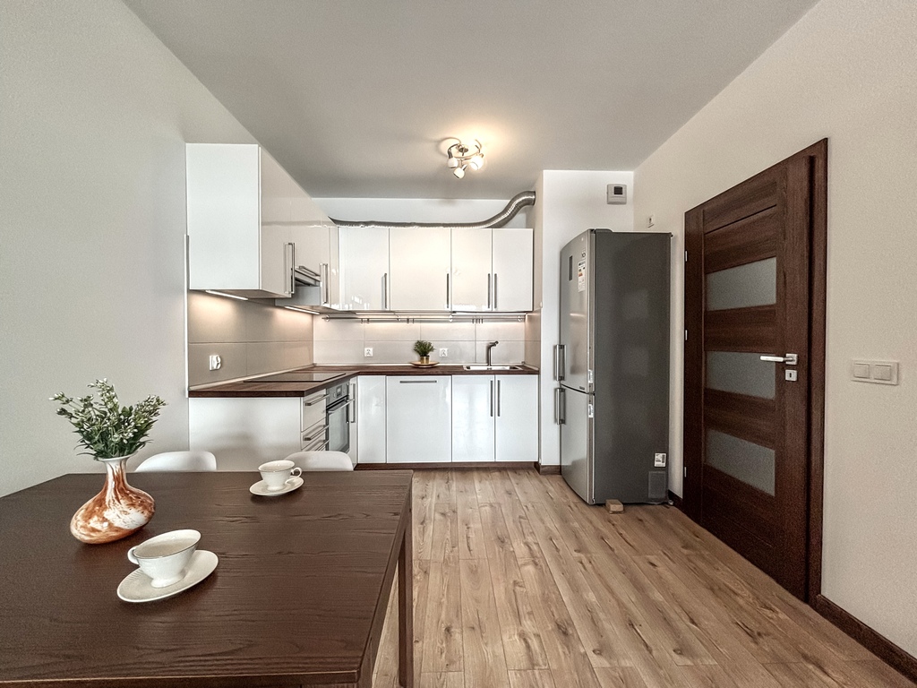 Wnętrze zostało zaprojektowane z myślą o komforcie domowników - każde z pomieszczeń jest ustawne, daje poczucie przestrzeni oraz pozwala na pełną prywatność. Mieszkanie świetnie sprawdzi się jako przestrzeń dla rodziny, pary lub osób pracujących zdalnie, które potrzebują dodatkowego pokoju do pracy czy relaksu. Układ pomieszczeń zapewnia duże możliwości aranżacyjne, niezależnie od stylu życia i preferencji estetycznych.