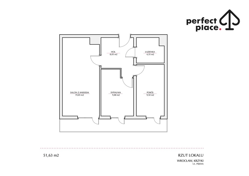 Mieszkanie położone jest przy ul. Pięknej, na granicy dzielnic Krzyki i Tarnogaj – to okolica łącząca spokojny charakter z doskonałym dostępem do centrum oraz pełną infrastrukturą miejską. W bezpośrednim sąsiedztwie znajdują się liczne sklepy, punkty usługowe, restauracje, szkoły i przedszkola, co czyni tę lokalizację wyjątkowo wygodną dla rodzin oraz osób ceniących miejski komfort życia.