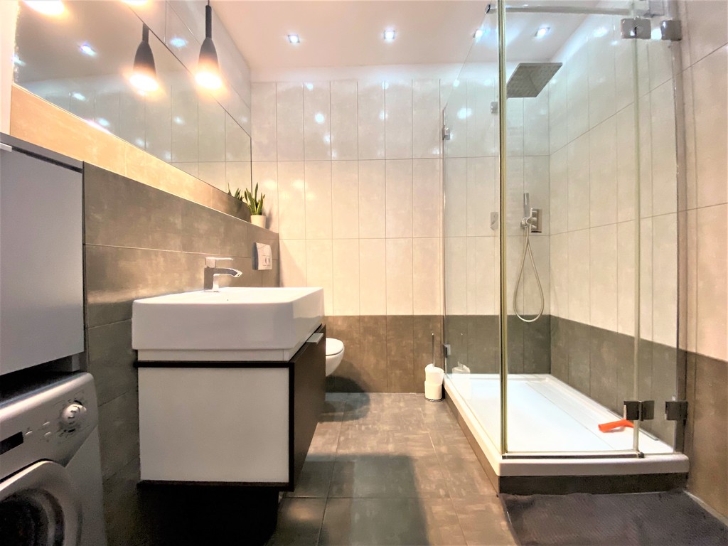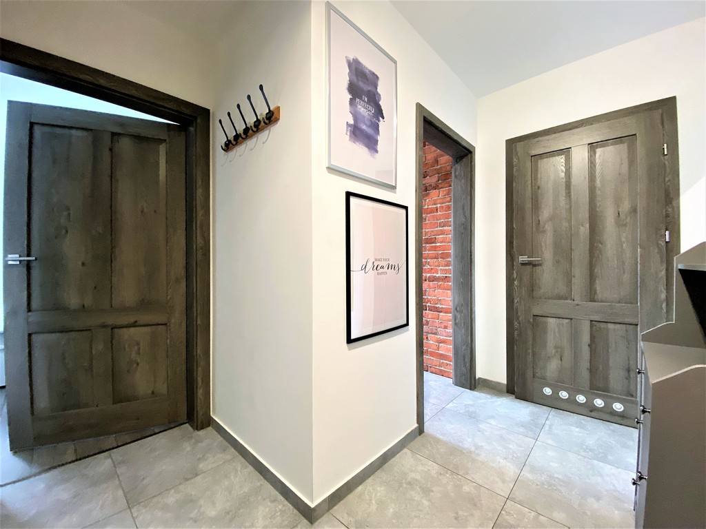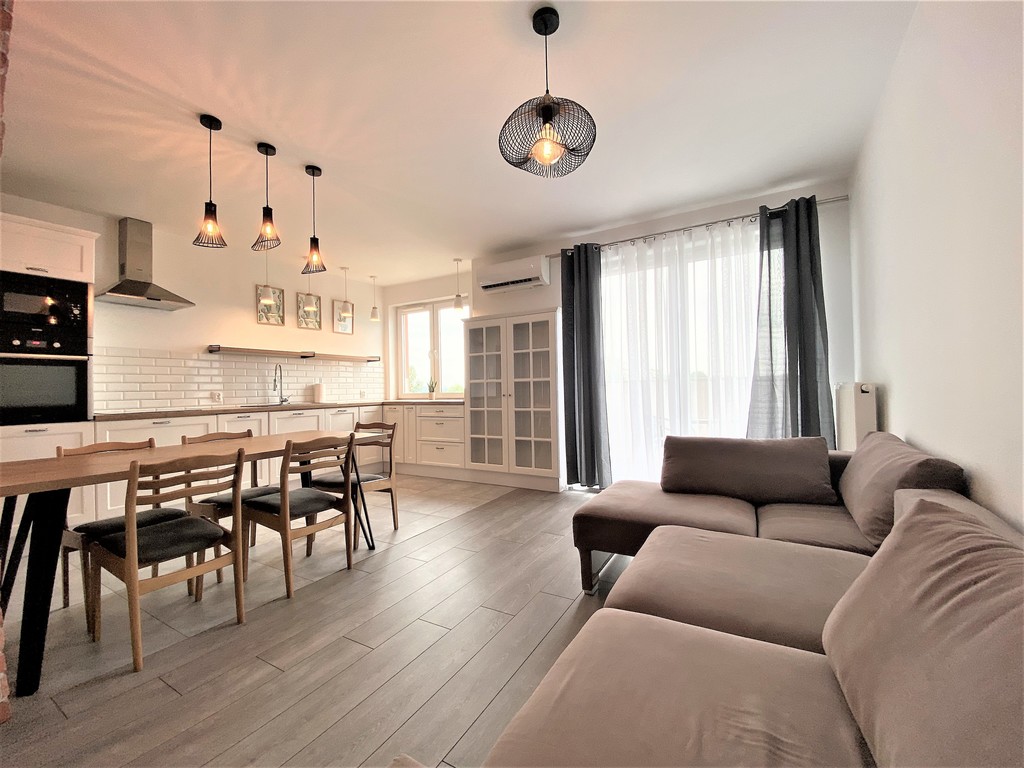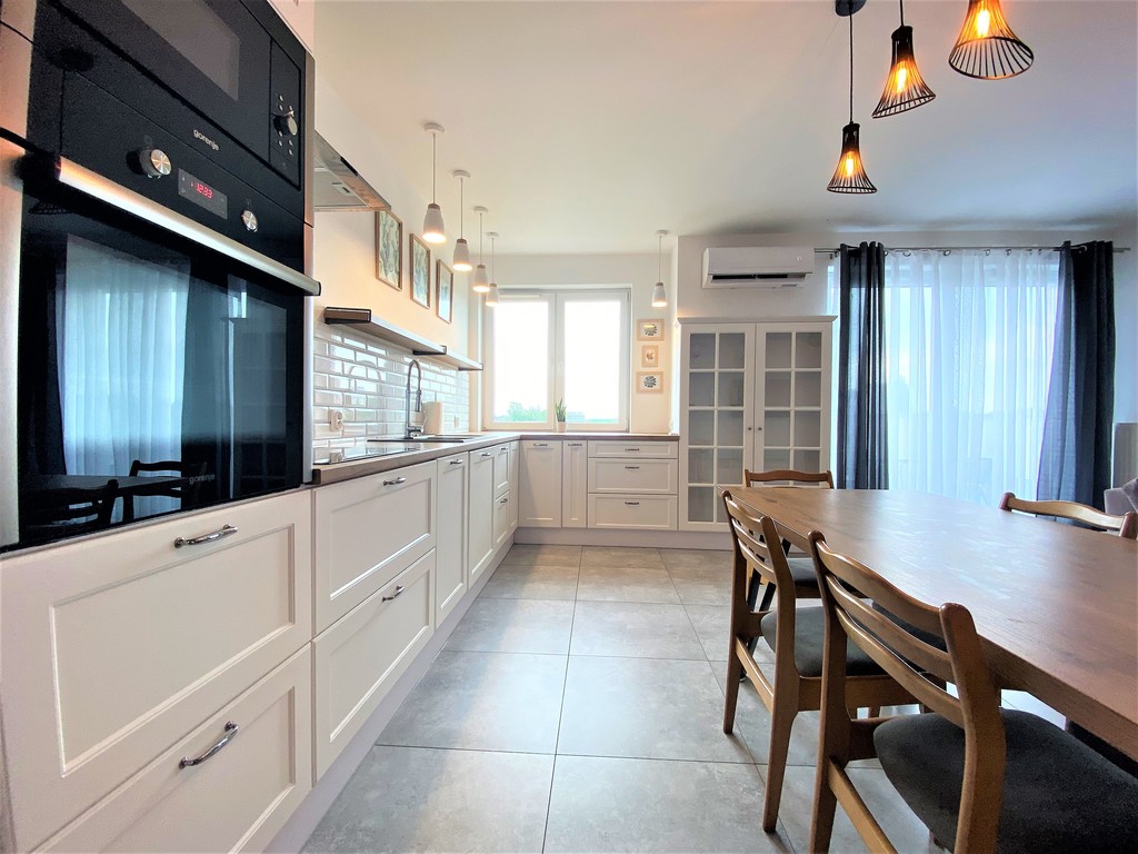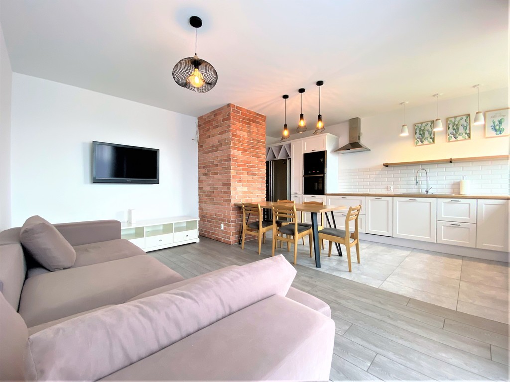 Kuchnia, wyposażona w najnowocześniejszy sprzęt AGD ( lodówka, piekarnik, płyta grzewcza, zmywarka, mikrofalówka), Przestronny salon z wyjściem na balkon. Łazienka z prysznicem. Sypialnia wyposażona w podwójne łóźko z materacem oraz pojemną szafę. Dodatkowym atutem jest garderoba.