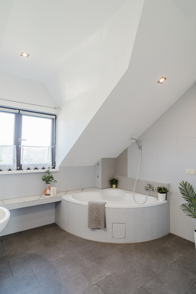 W łazience na parterze wyposażona w prysznic oraz pralkę, natomiast łazienka w II kondygnacji posiada dużą wannę.