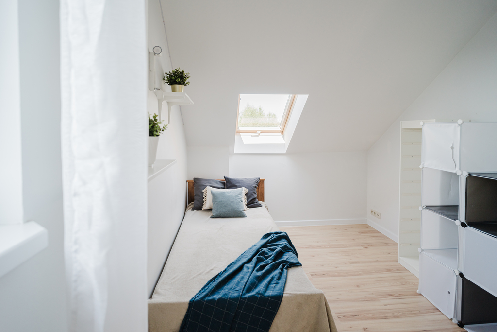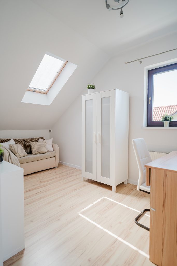 Sypialnia wyposażona w łóżko z podwójnym materacem, oraz stolik. Drugi pokój wyposażony jest w rozkładaną kanapę, biurko oraz szafę a trzeci w pojedyncze łóżko i biurko.