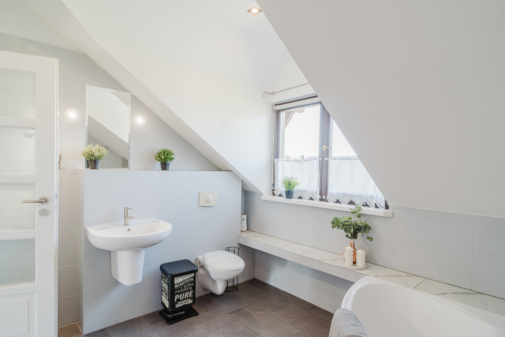 W łazience na parterze wyposażona w prysznic oraz pralkę, natomiast łazienka w II kondygnacji posiada dużą wannę.