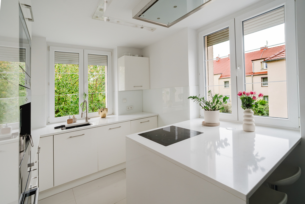 - Space and light – lots of windows, open kitchen, functional room layout.