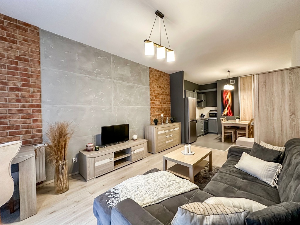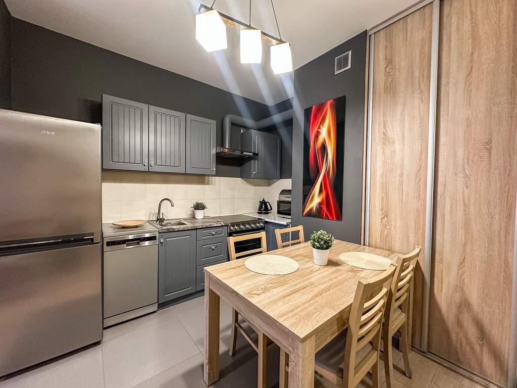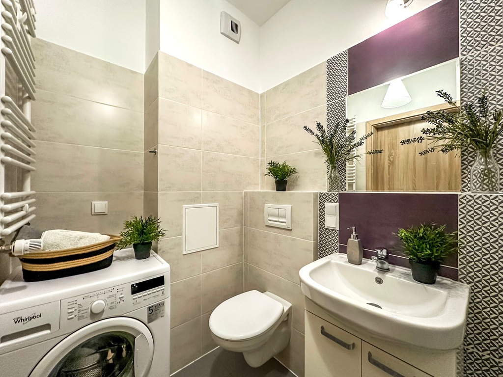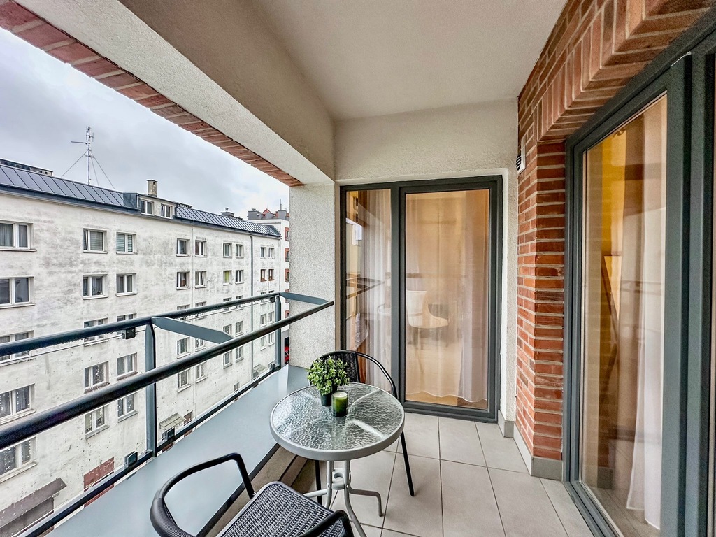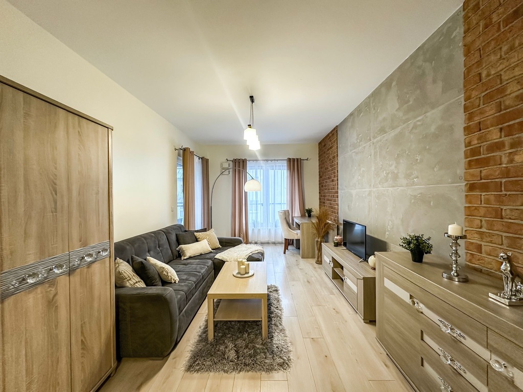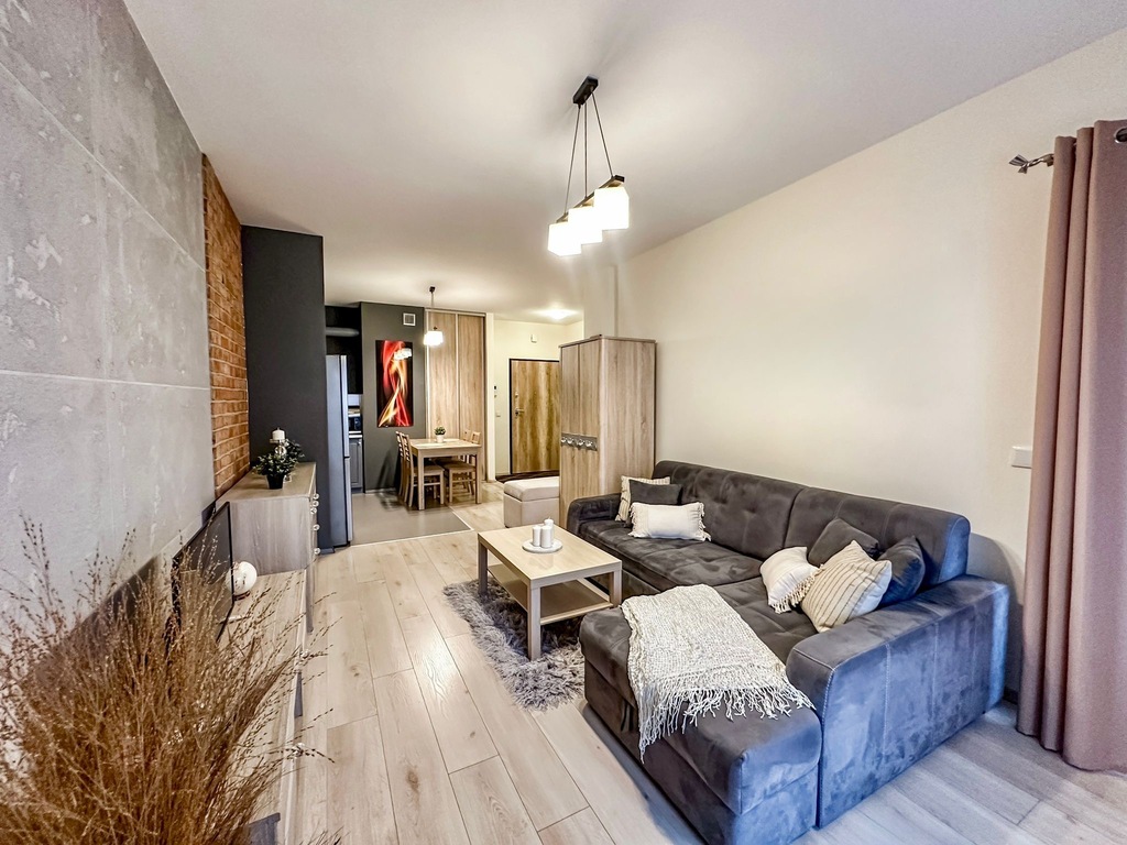 The apartment is located in the modern Nowa Papiernia development, renowned for its high standard of finish and excellent location. The space is bright, cozy, and fully furnished – ready for immediate move-in.