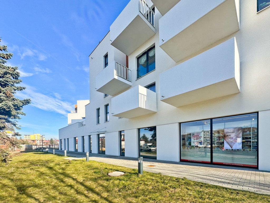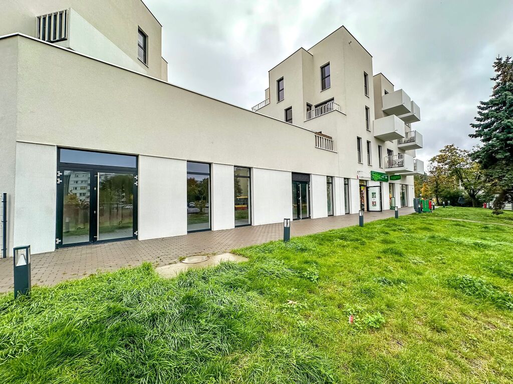 The premises are located on the ground floor of a new building in a large, newly constructed housing estate. The premises' windows are visible from the street and sidewalk, and a bus stop is located opposite the building. Neighboring premises include a drugstore, a workout studio, and a Żabka grocery store. A Biedronka supermarket with a large parking lot is just a few dozen meters away. Despite numerous new housing developments, Biskupin and Sępolno, as well as the surrounding districts, are still lacking restaurants, cafes, private medical clinics, beauty and hair salons, and many other services.
