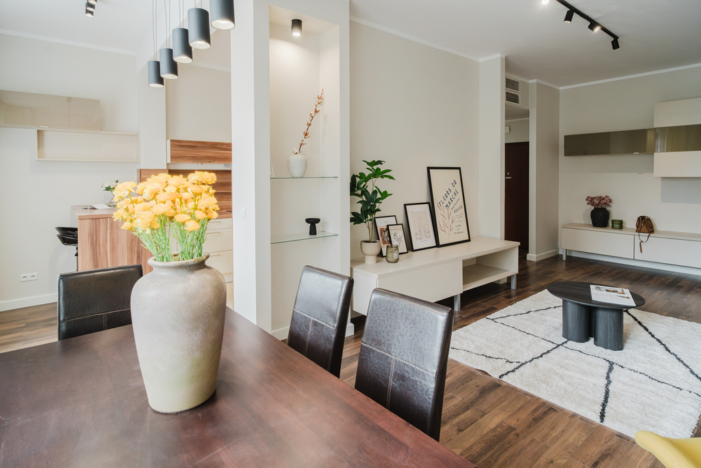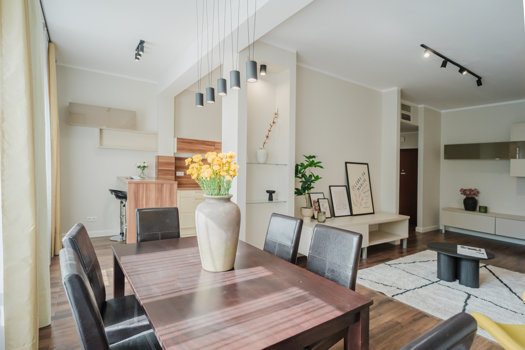 For sale 2-room apartment finished to a high standard. The area of the property (70 m2) provides a sense of comfort, and the high rooms - 3 m additionally increase the feeling of space. Large windows provide good lighting and make the apartment bright and sunny. The property is equipped with a central air conditioning system. The apartment includes a parking space in the underground garage. The apartment is currently rented and thanks to all its advantages, it is a good investment product with a high rate of return.
