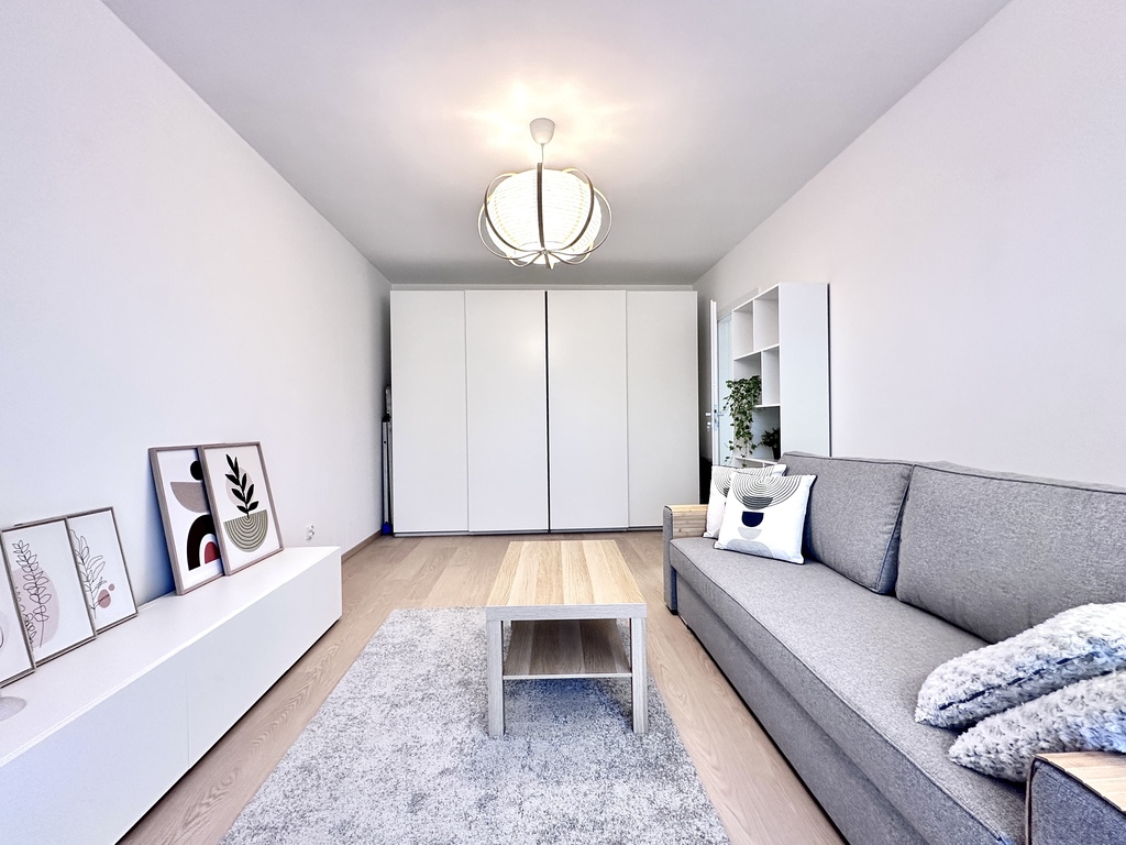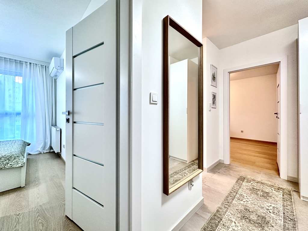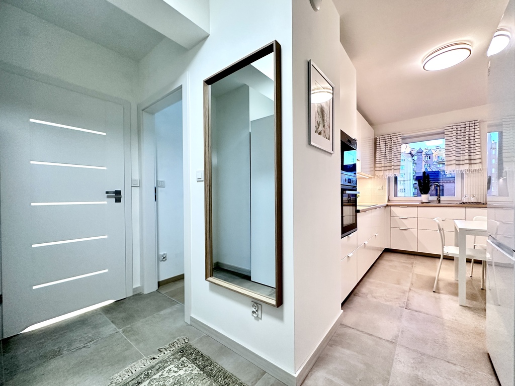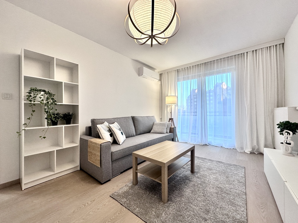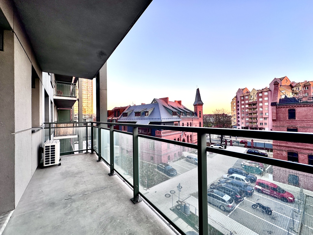I heartily recommend this new, stylish, two-room apartment for rent, located a short distance from the center of Wrocław on Jedności Narodowej Street in the Browary Wrocławskie development.