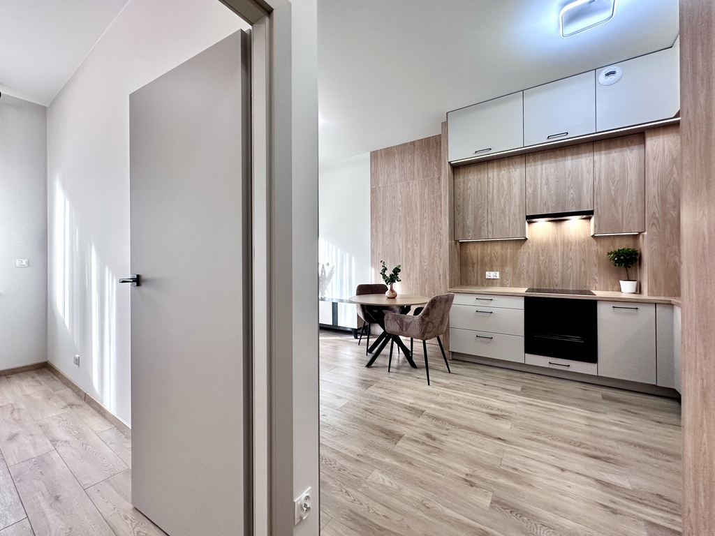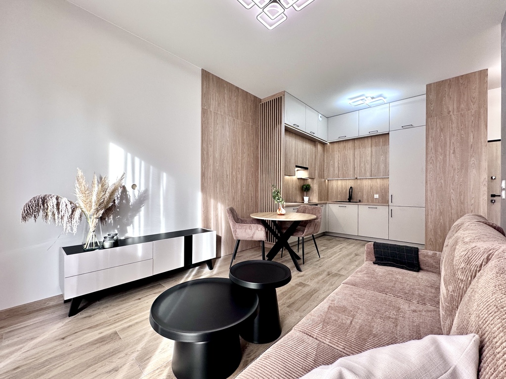 I highly recommend a modern, two-room apartment for rent, located in a modern housing estate on Międzyleska Street.
