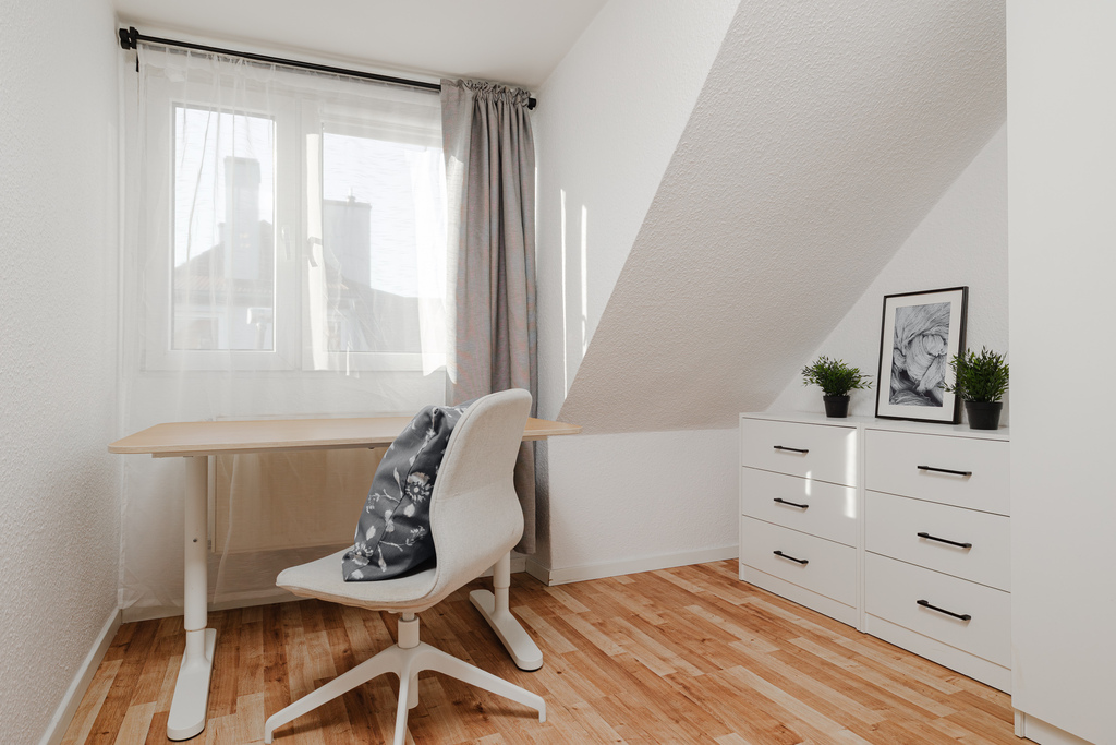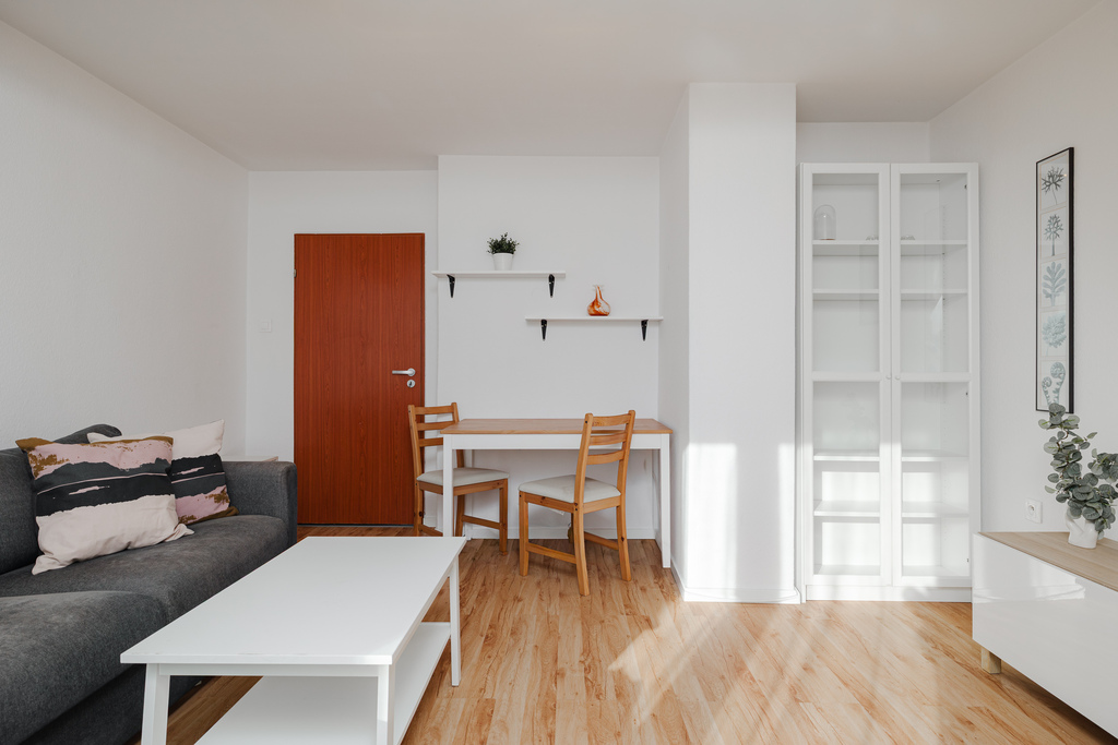 The apartment was designed with comfort and functionality in mind. The spacious living room is the heart of the apartment, the perfect place to relax. Additionally, there's a well-arranged bedroom and a study/children's room, which can easily be adapted to your needs.