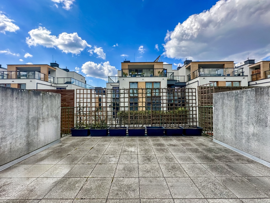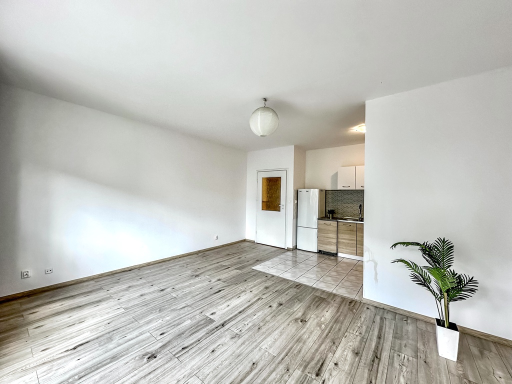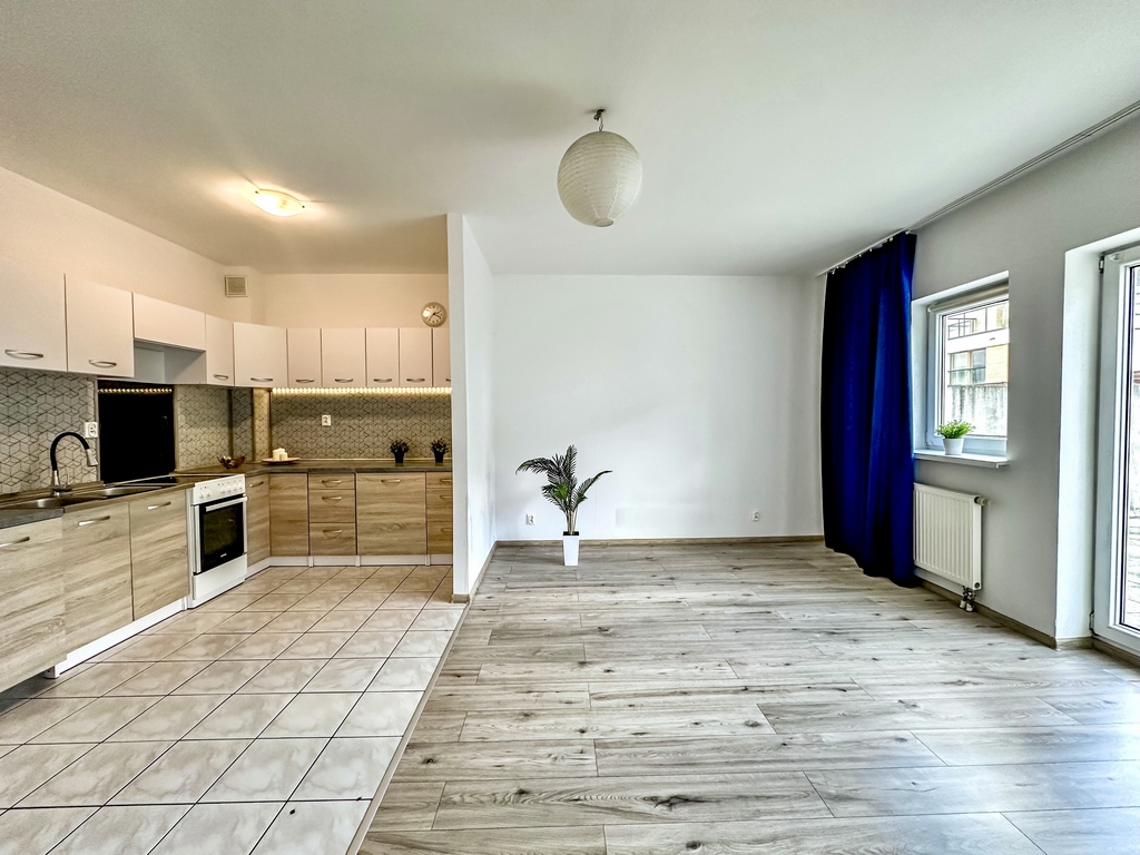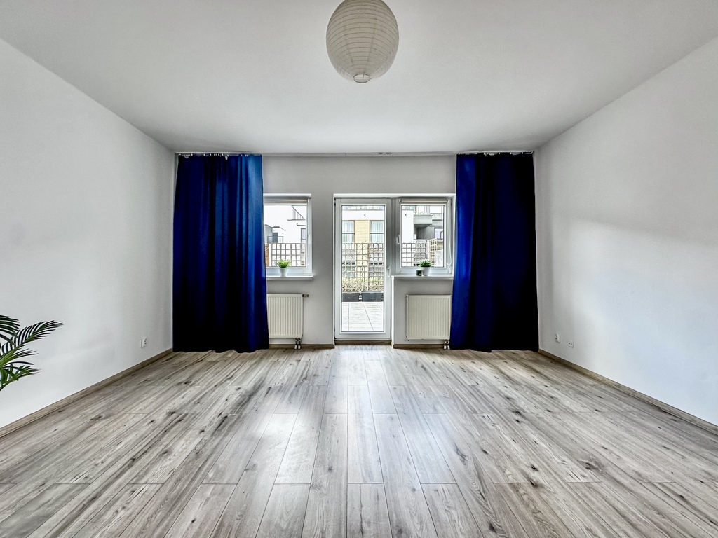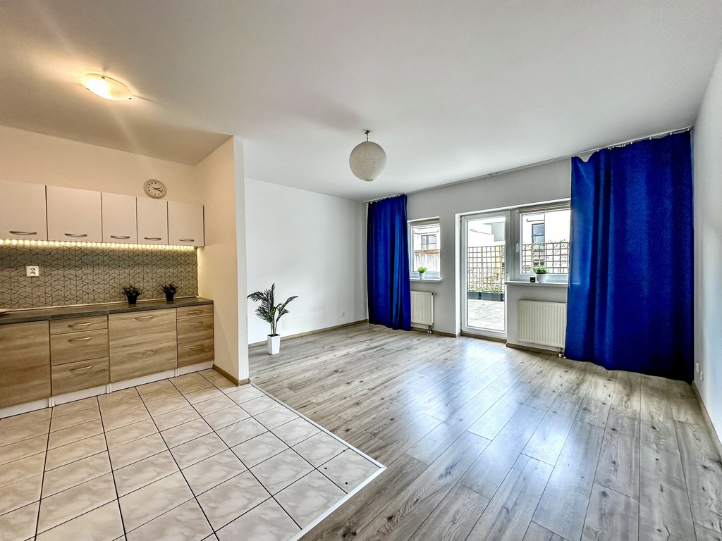 The property comprises a spacious and bright living room with access to a large terrace, which, thanks to a wooden fence, provides comfort and privacy. The functional kitchenette is equipped with appliances: an oven with a hob, a refrigerator with a freezer, a hood, and a dishwasher. The bedroom and the rest of the apartment are fully customizable, allowing you to tailor the interior to your needs and style. The bathroom is equipped with a shower. The hallway features a spacious wardrobe and chest of drawers. An additional advantage of the property is a parking space in the underground garage.