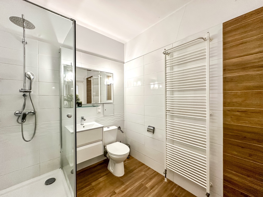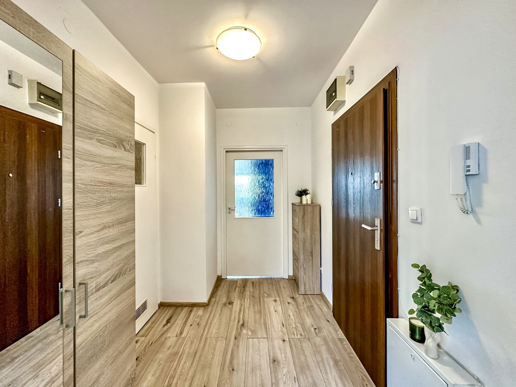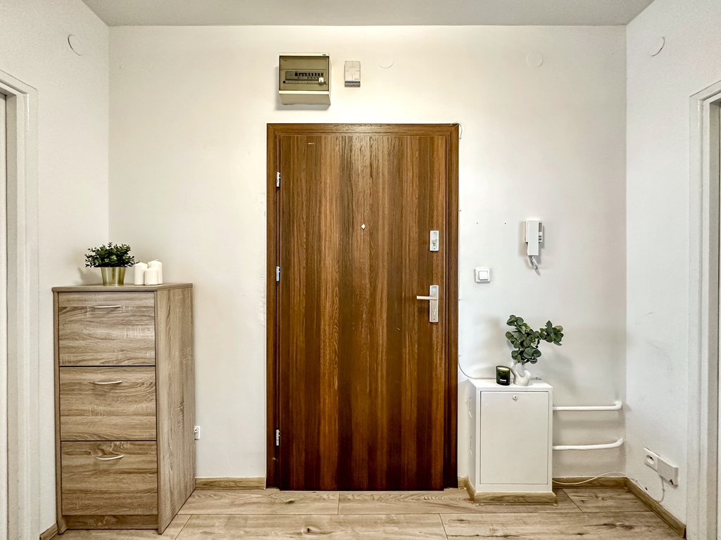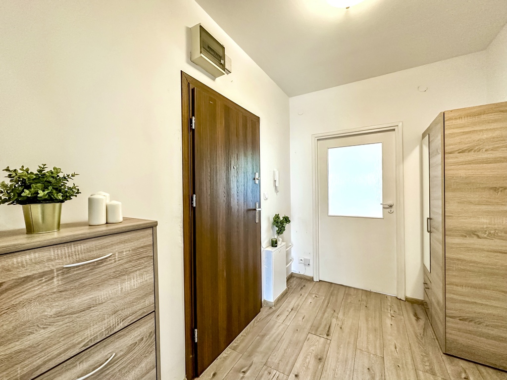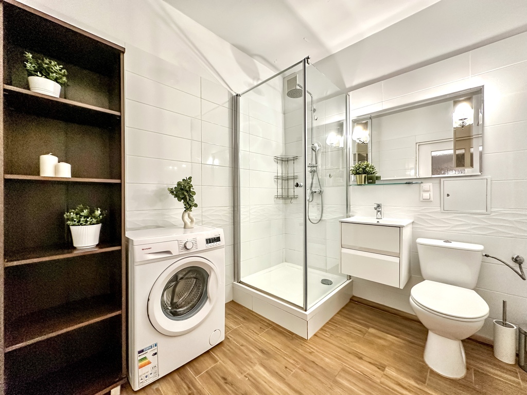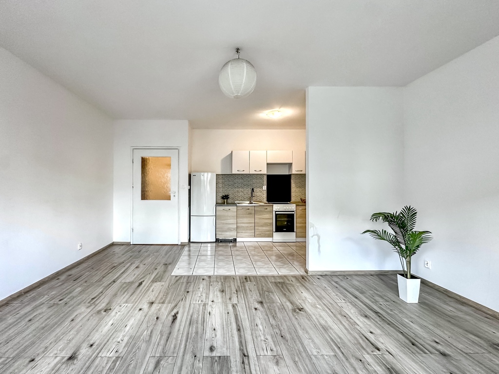 The property comprises a spacious and bright living room with access to a large terrace, which, thanks to a wooden fence, provides comfort and privacy. The functional kitchenette is equipped with appliances: an oven with a hob, a refrigerator with a freezer, a hood, and a dishwasher. The bedroom and the rest of the apartment are fully customizable, allowing you to tailor the interior to your needs and style. The bathroom is equipped with a shower. The hallway features a spacious wardrobe and chest of drawers. An additional advantage of the property is a parking space in the underground garage.